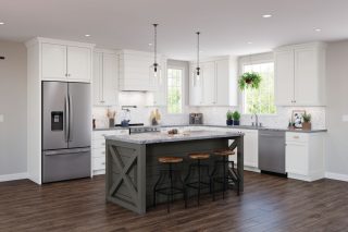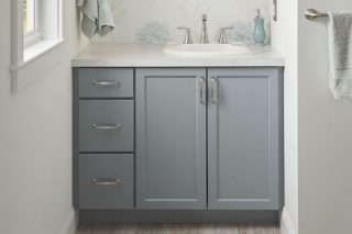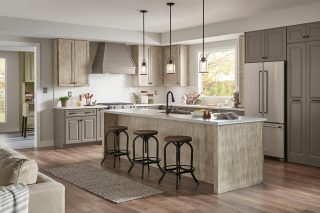 Harborside in maple Sea Salt and Hawthorne in maple Eagle Rock
